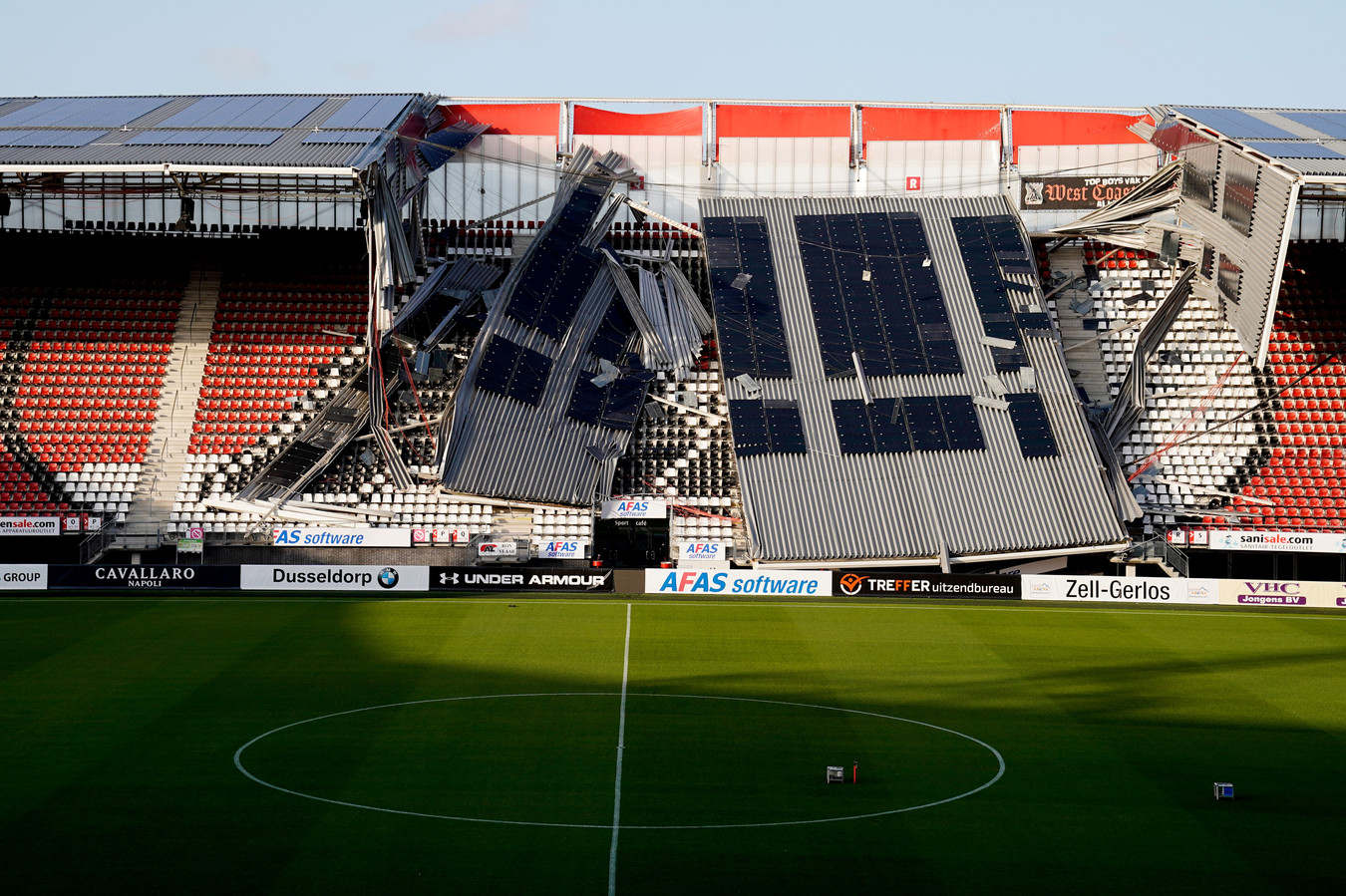A bicyclist died at about 2:30 p.m. One person was killed, and separately a portion of the afas stadion roof collapsed as heavy winds gripped the netherlands on saturday. The latest tweets from @azalkmaar Az alkmaar's afas stadion roof collapsed completely destroying part of a stand. Afas stadion decision to build a new stadium was taken in early 21 st century.